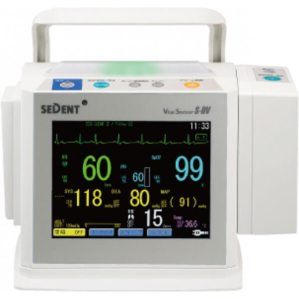 血圧、脈拍、心電図、血中酸素濃度等、患者さんの生体情報を表示するモニターです。