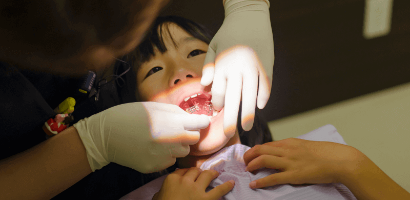 お子様の発達に合わせたさまざまな治療を行います。永久歯に生え変わる前の乳歯の治療、咬合誘導、予防などを行います。虫歯を治すために必要になる治療は、大人と子供で大きな違いはありませんが、お子様の治療は成長発育や保護者様への指導、メンタルケアなども必要になるため、専門的な知識が必要になります。
